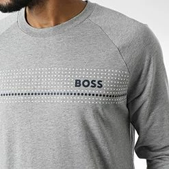 Le moins cher 💯 Tee 👚 Shirt A Manches Longues Capuche Identity 50465557 Gris Chiné de BOSS 🤩
