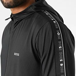 Meilleure affaire ⌛ Veste Zippée Capuche A Bandes Sicon Gym 50472367 Noir de BOSS 🥰