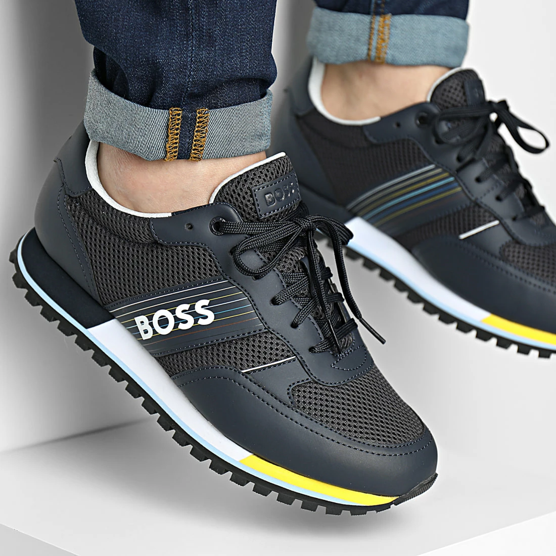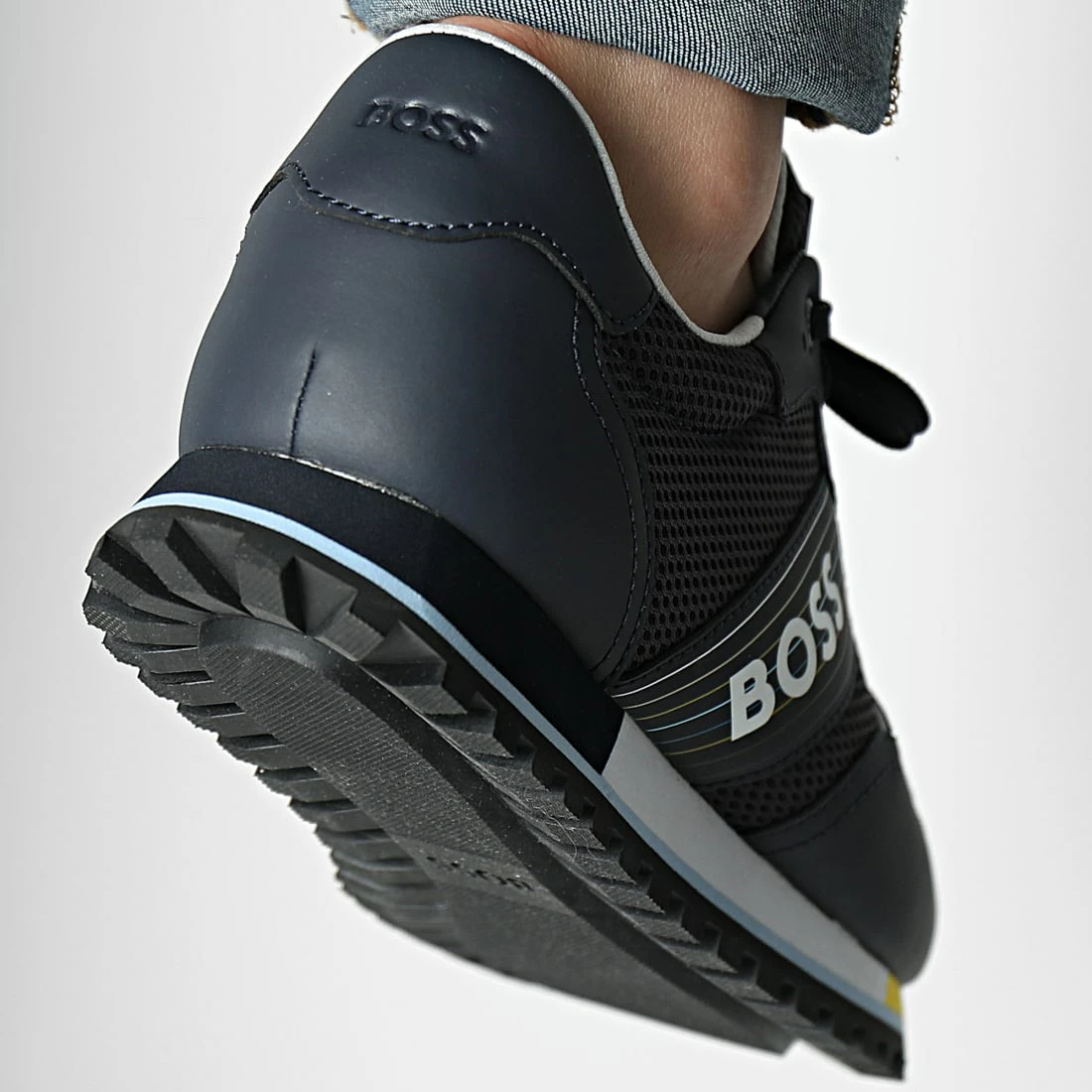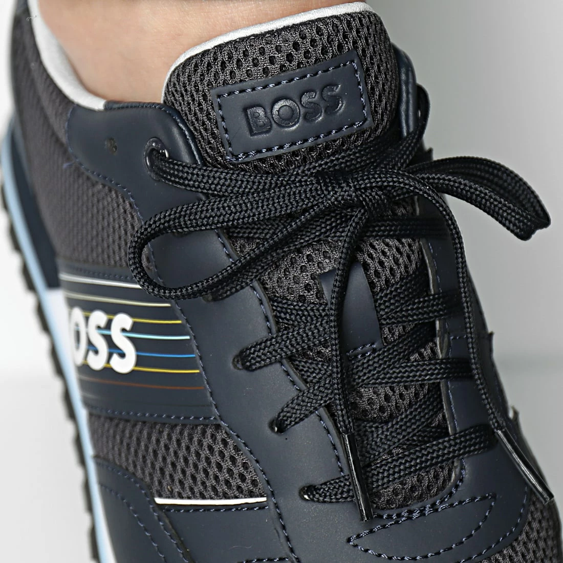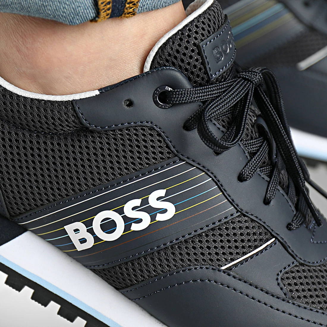 • Baskets urbaines tendance en mesh et aspect cuir retourné avec logo BOSS