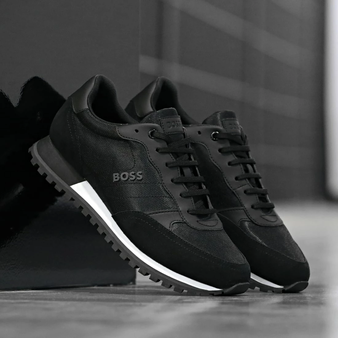 • Baskets tendance en mesh et cuir véritable avec logo BOSS