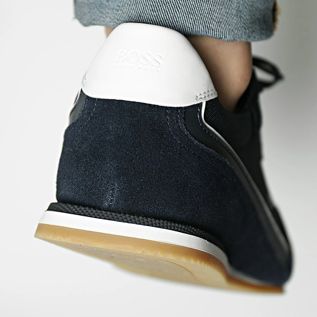 • Basket urbaine élégante en nylon et cuir avec logo BOSS latéral