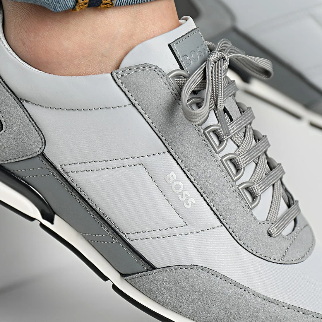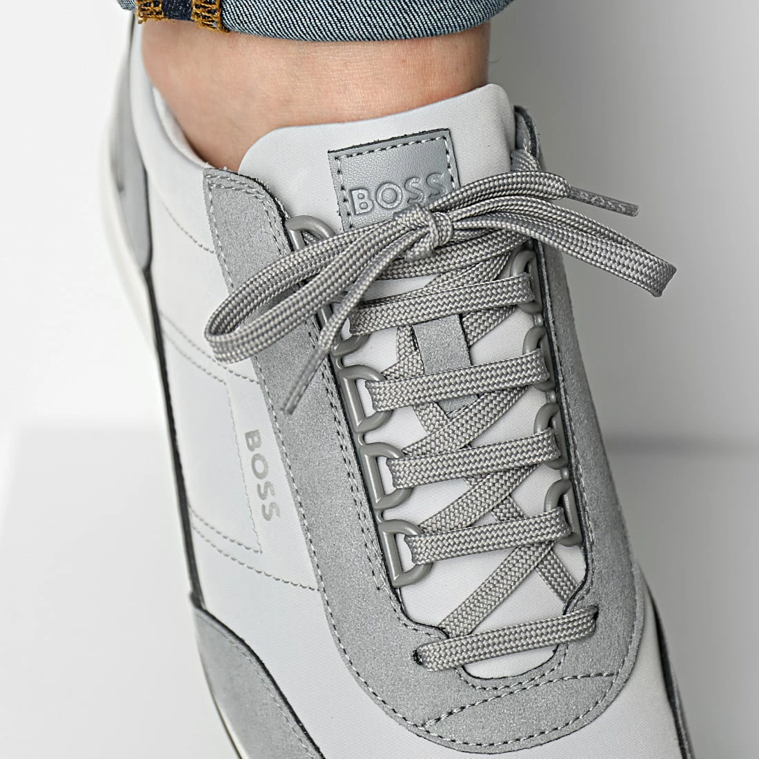• Baskets urbaines tendance en mesh et aspect cuir retourné avec logo BOSS