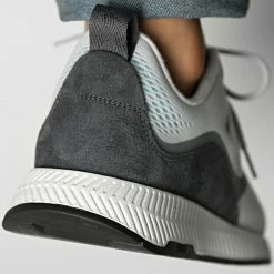 • Baskets de running en maille tressée recyclée et cuir véritable