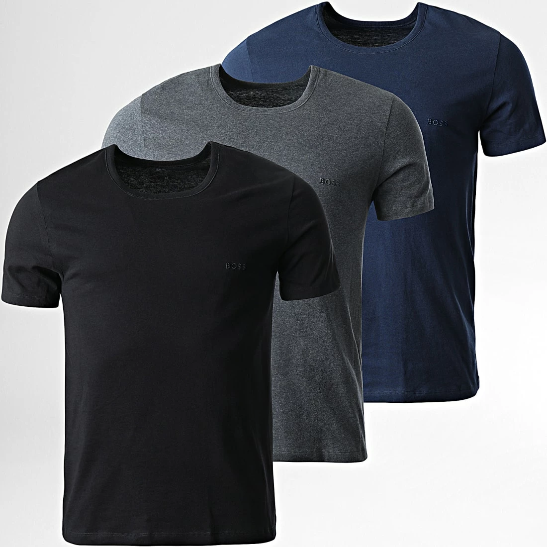 Offres 👍 Lot De 3 Tee 👚 Shirts Classic 50475284 Noir Bleu Marine Gris Anthracite Chiné de BOSS 🎉