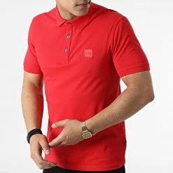 • Polo à manches courtes tendance avec patch BOSS brodé