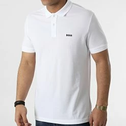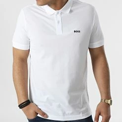• Polo à manches courtes tendance avec visuel BOSS brodé