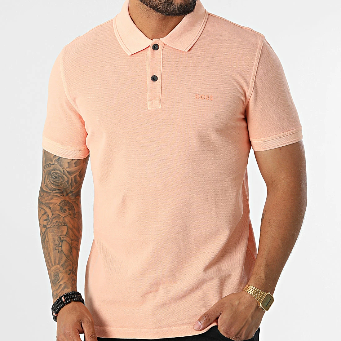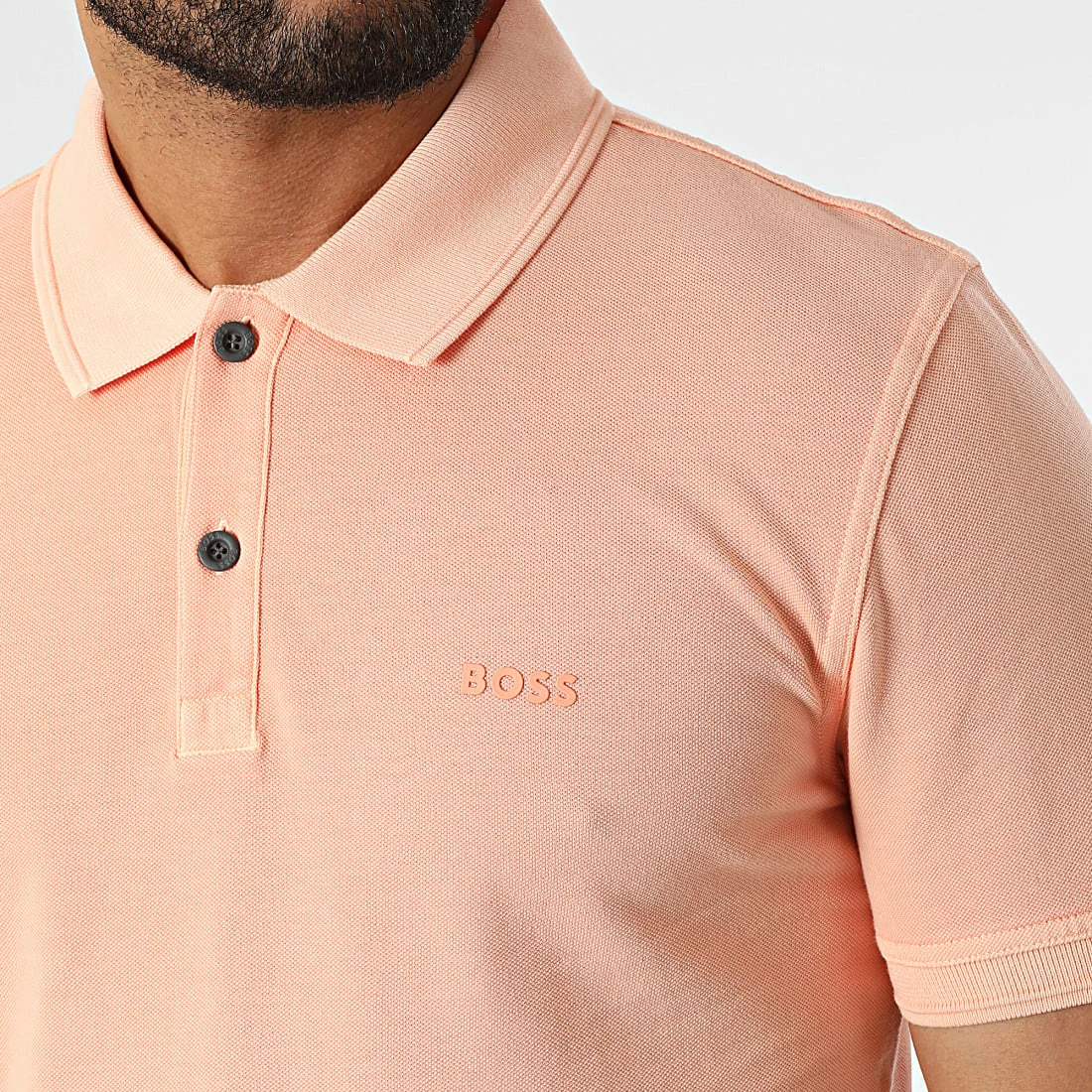 • Polo manches courtes en coton uni avec logo BOSS en relief sur la poitrine