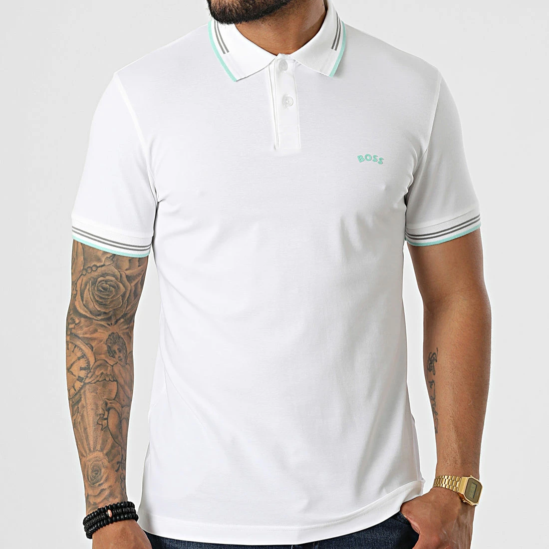 • Polo à manches courtes tendance avec logo BOSS imprimé