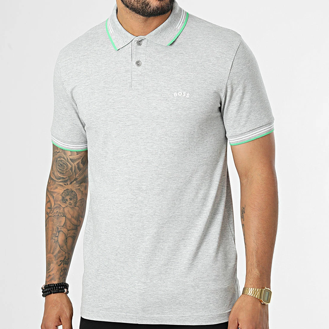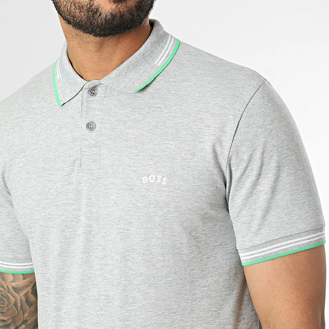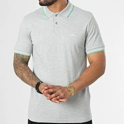 • Polo à manches courtes en coton stretch appliqué BOSS sur la poitrine