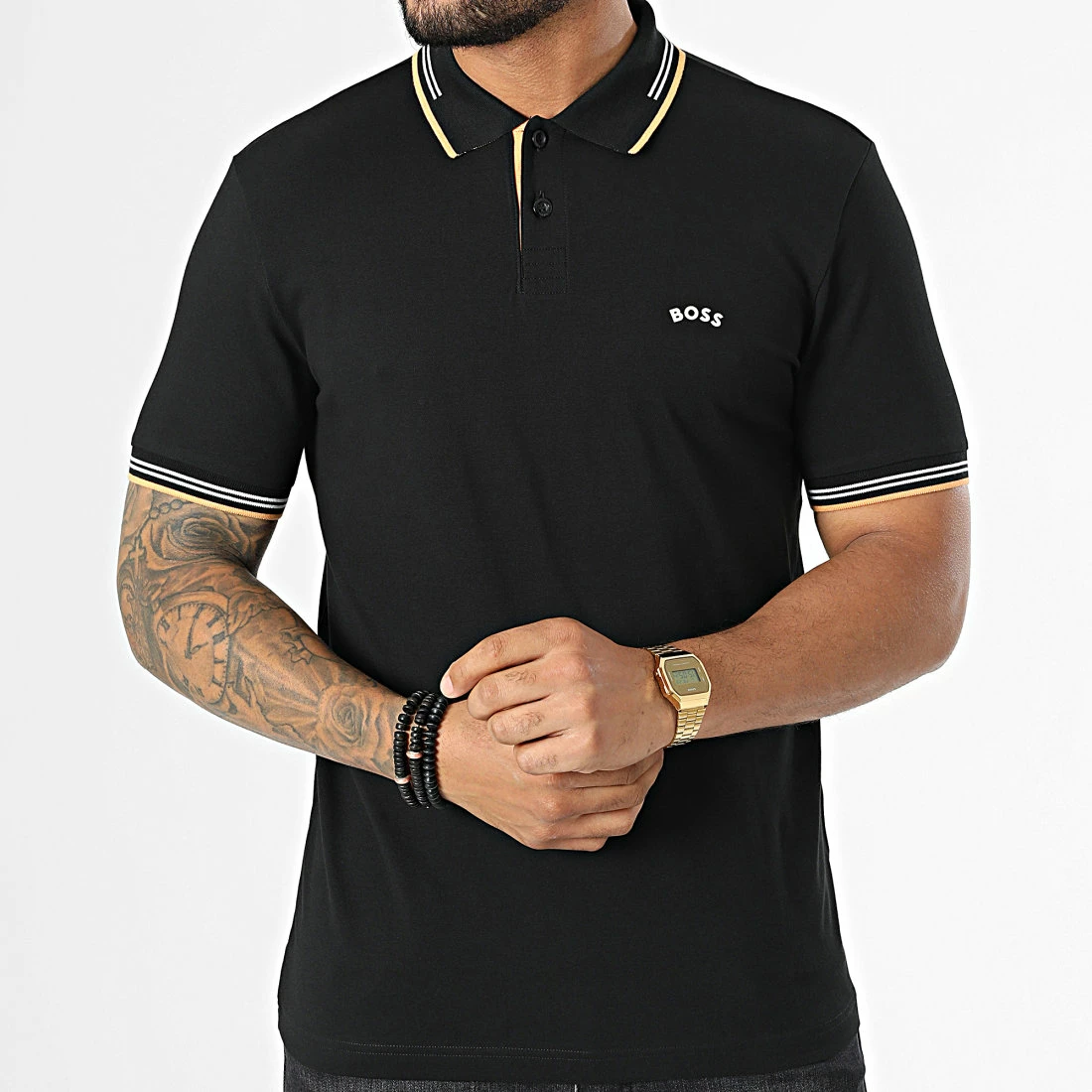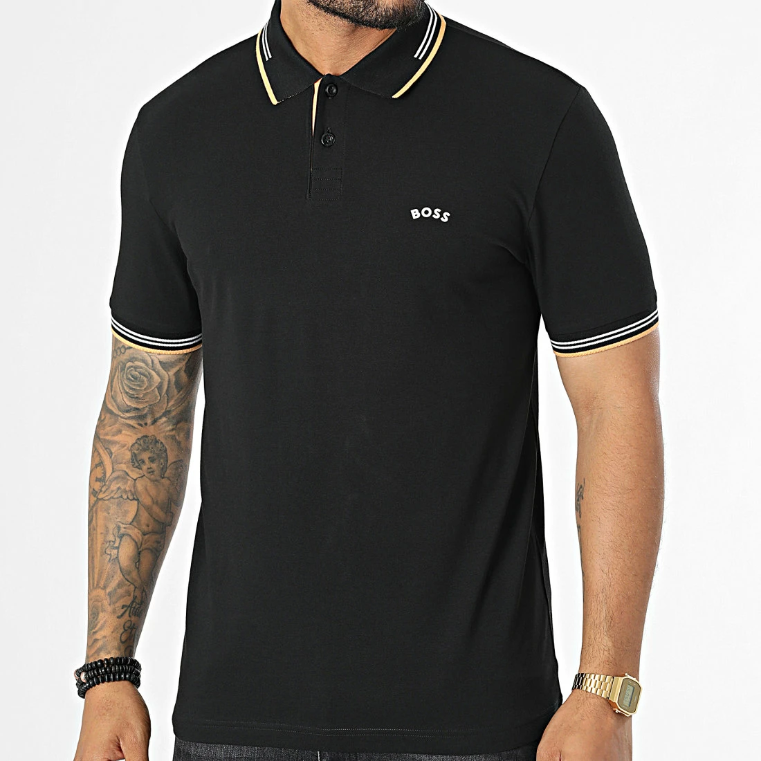 • Polo à manches courtes en coton stretch appliqué BOSS sur la poitrine