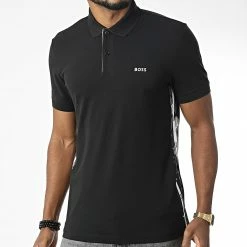 • Polo manches courtes en coton stretch brodé BOSS sur la poitrine