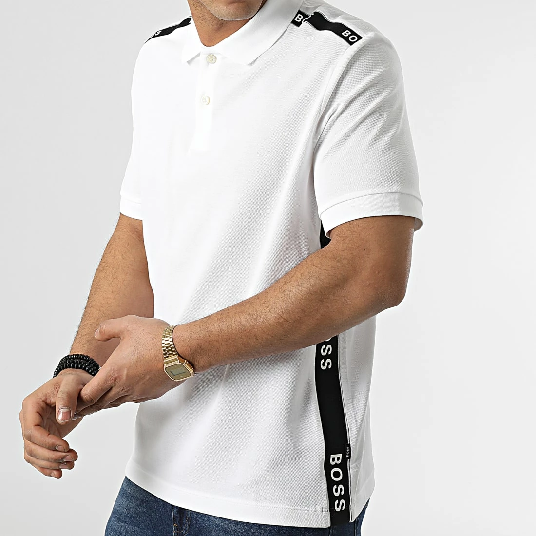Grosses soldes 🎉 Polo Manches Courtes A Bandes 50462400 Blanc de BOSS 🥰
