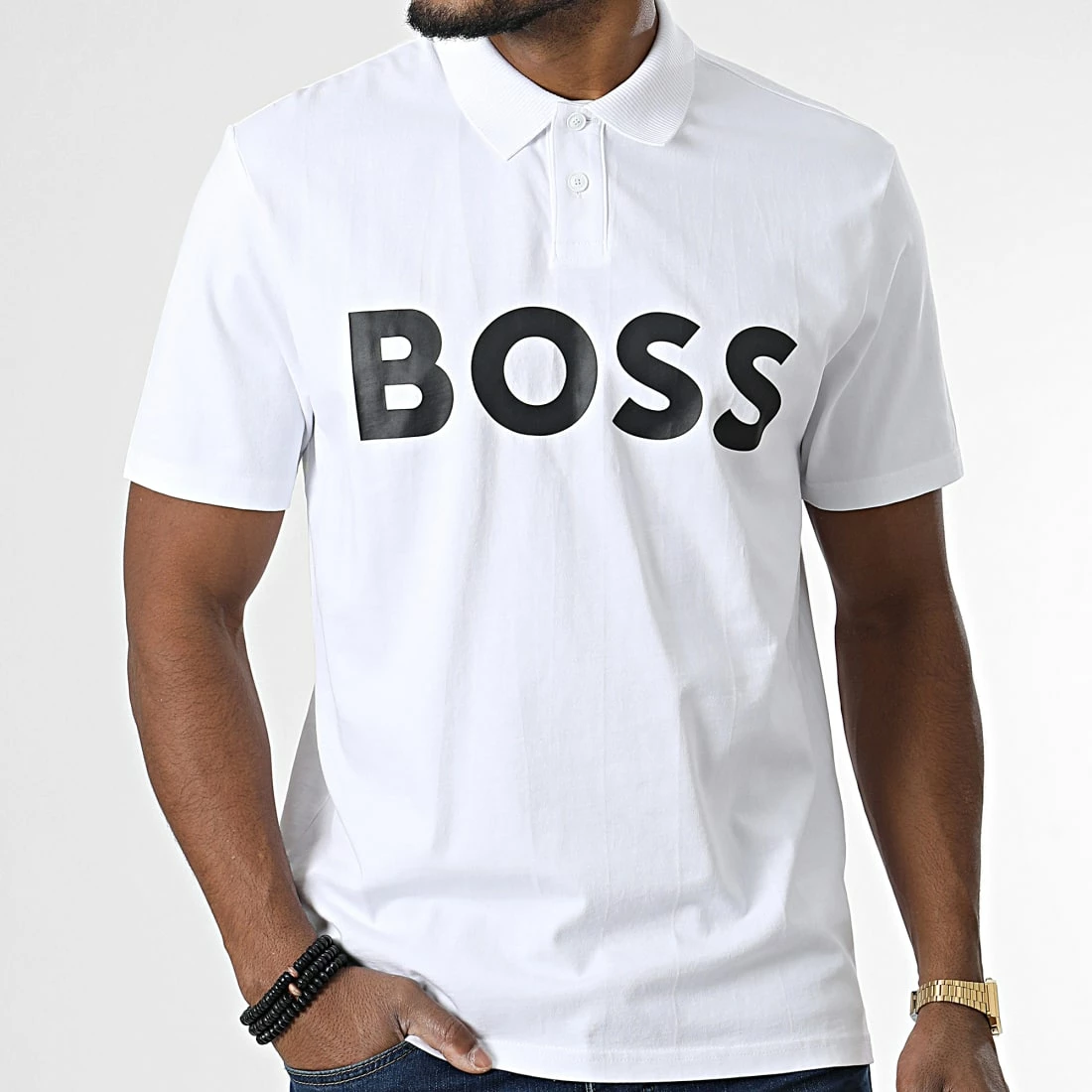 • Polo à manches courtes élégant tendance avec visuel BOSS imprimé