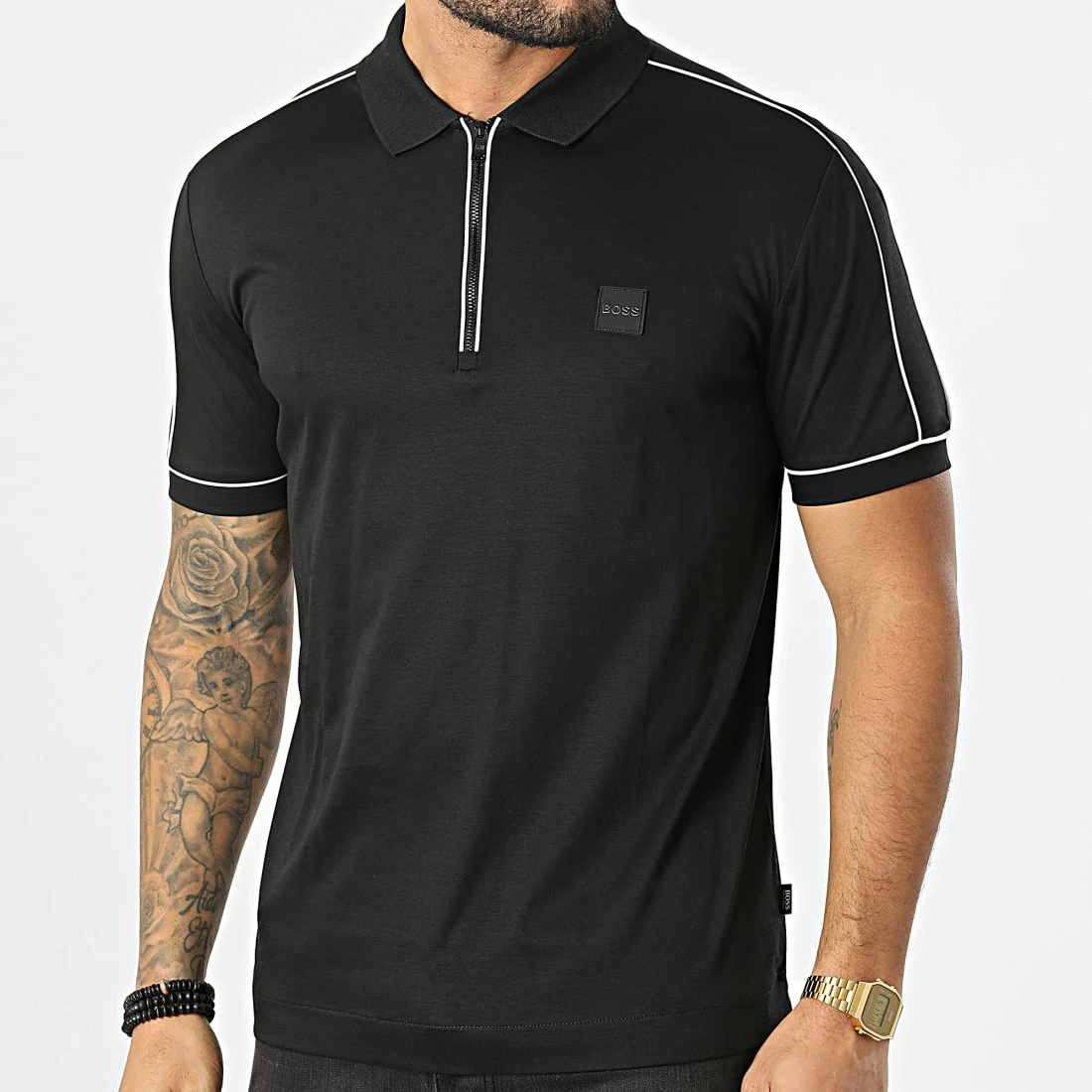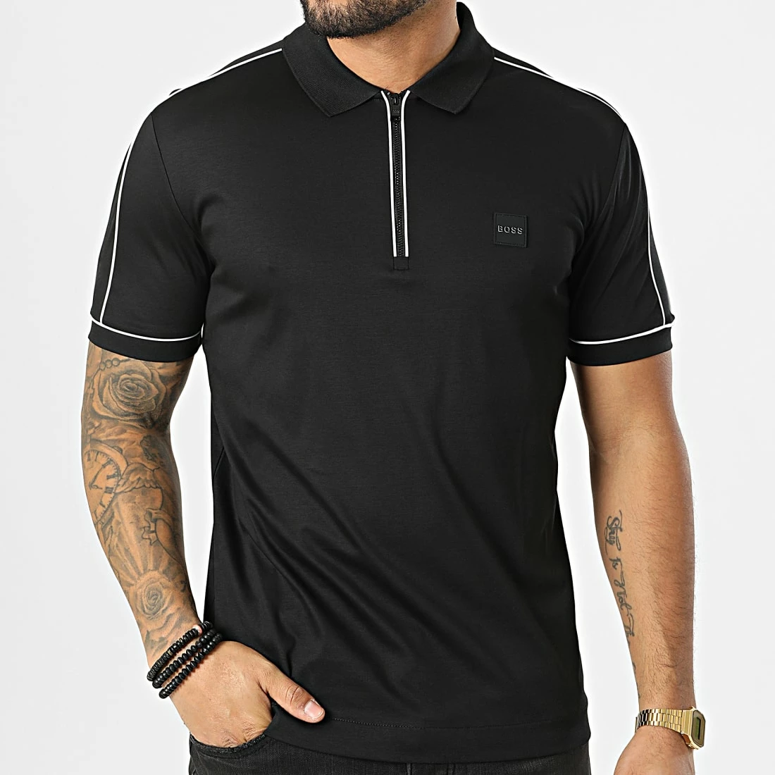 • Polo à manches courtes tendance avec patch BOSS brodé