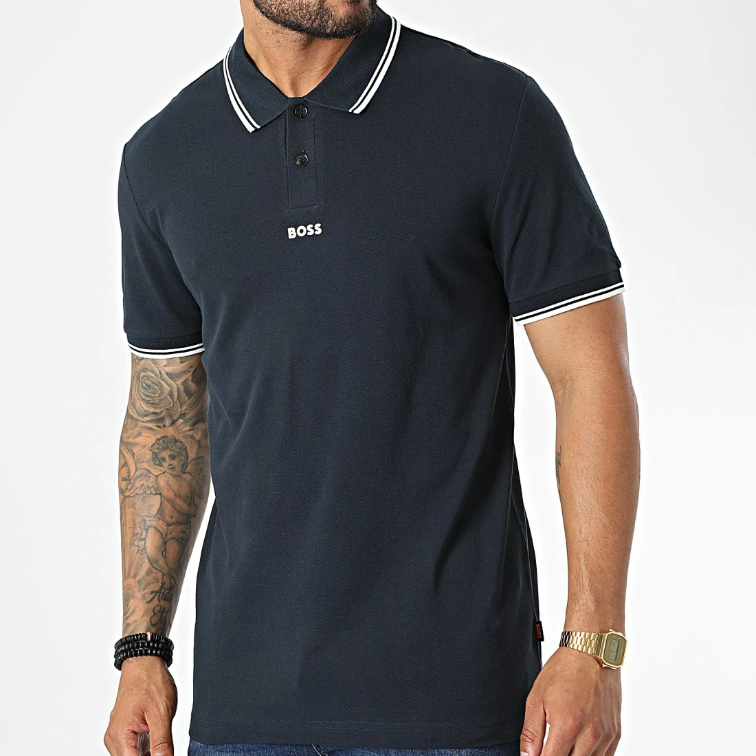 • Polo à manches courtes tendance avec visuel BOSS en relief