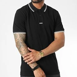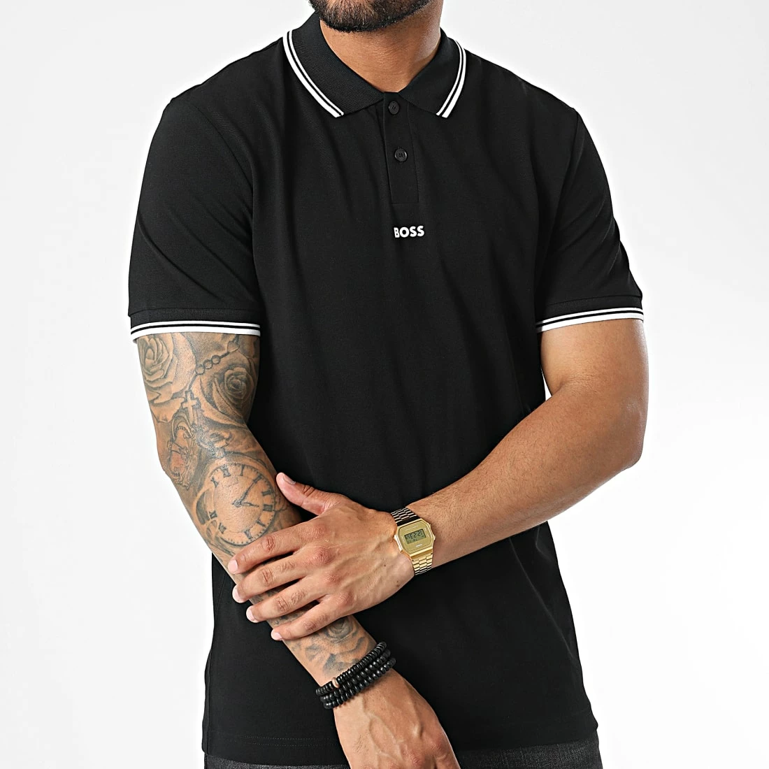 • Polo à manches courtes tendance avec visuel BOSS en relief