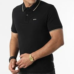 • Polo manches courtes en coton appliqué BOSS sur la poitrine
