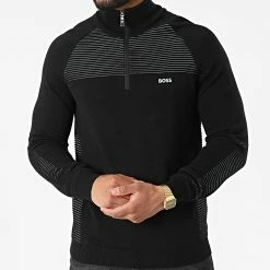 • Sweat à col zippé tendance avec visuel BOSS en relief
