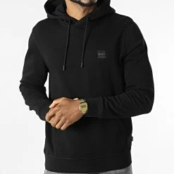 • Sweat capuche en coton uni brodé patch BOSS sur la poitrine