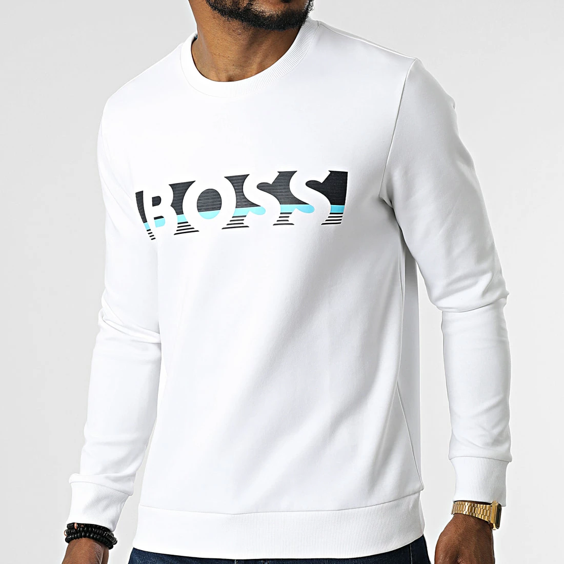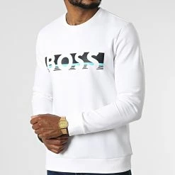 • Sweat crewneck en polycoton doux et stretch appliqué visuel BOSS en relief
