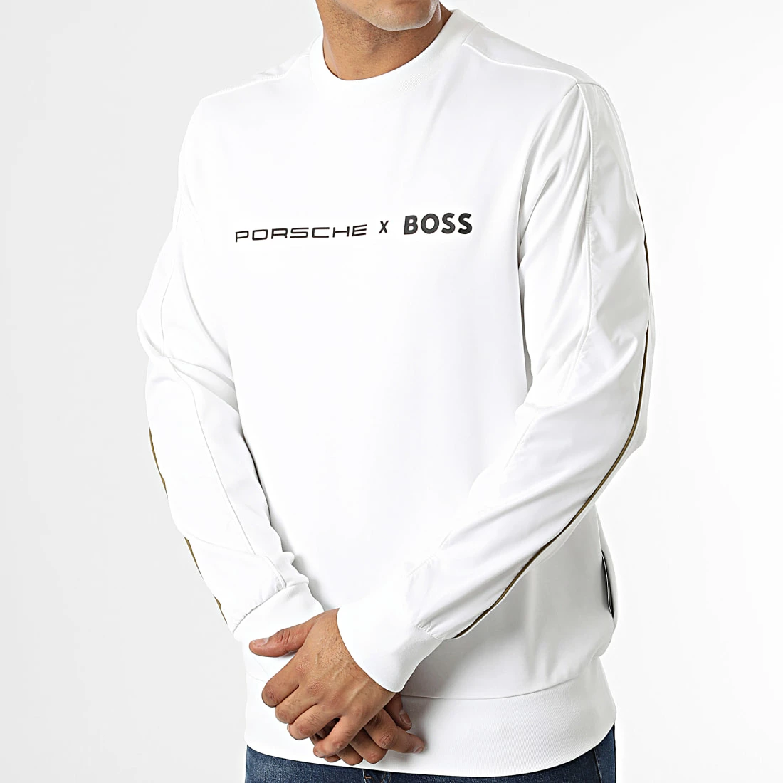 • Sweat crewneck bi-matière tendance appliqué BOSS x Porsche à l’avant