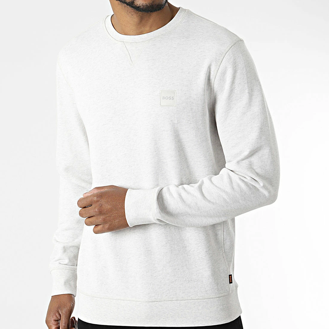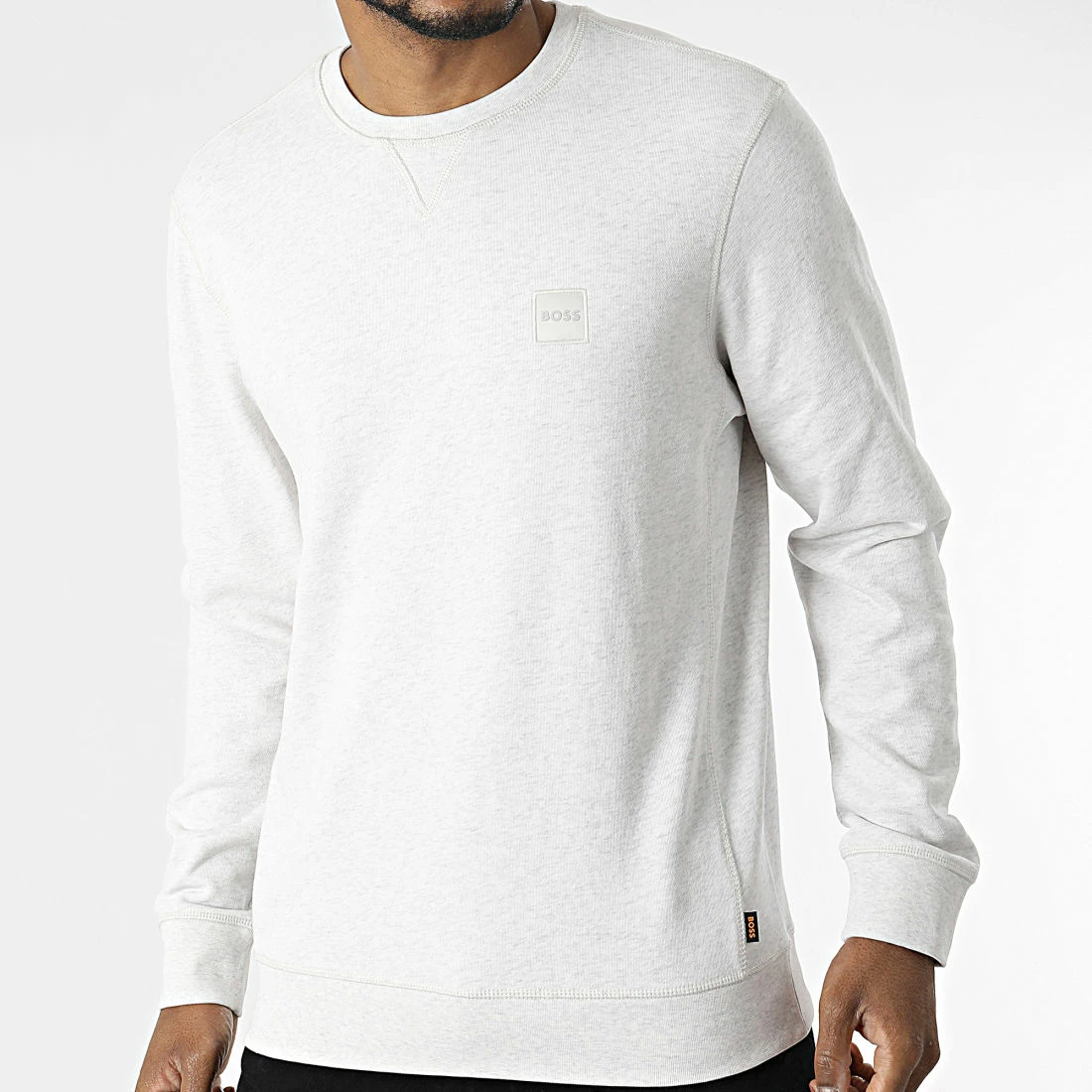 • Sweat crewneck en coton uni brodé patch BOSS sur la poitrine