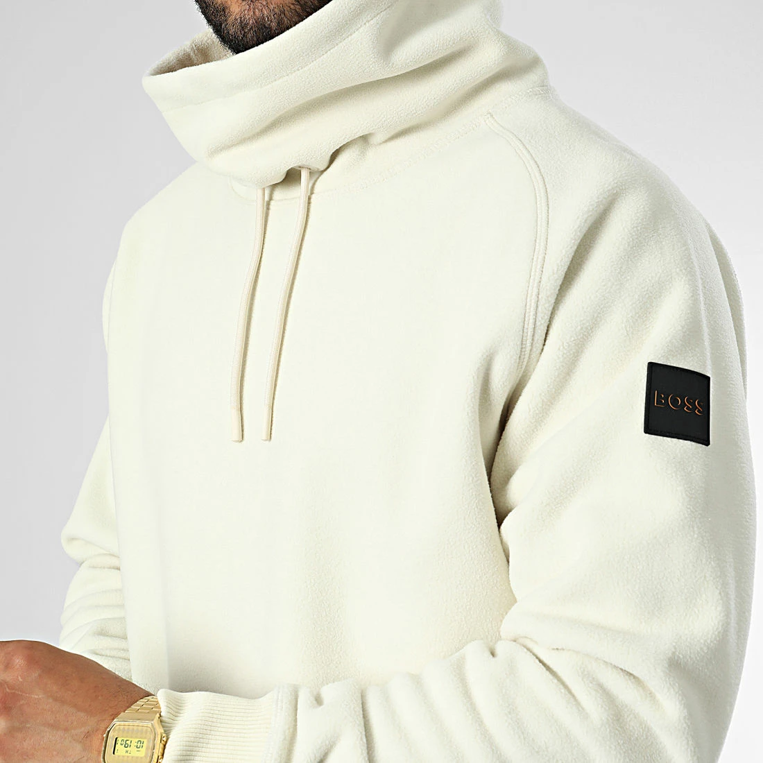• Sweat polaire tendance avec patch BOSS brodé sur l’épaule gauche