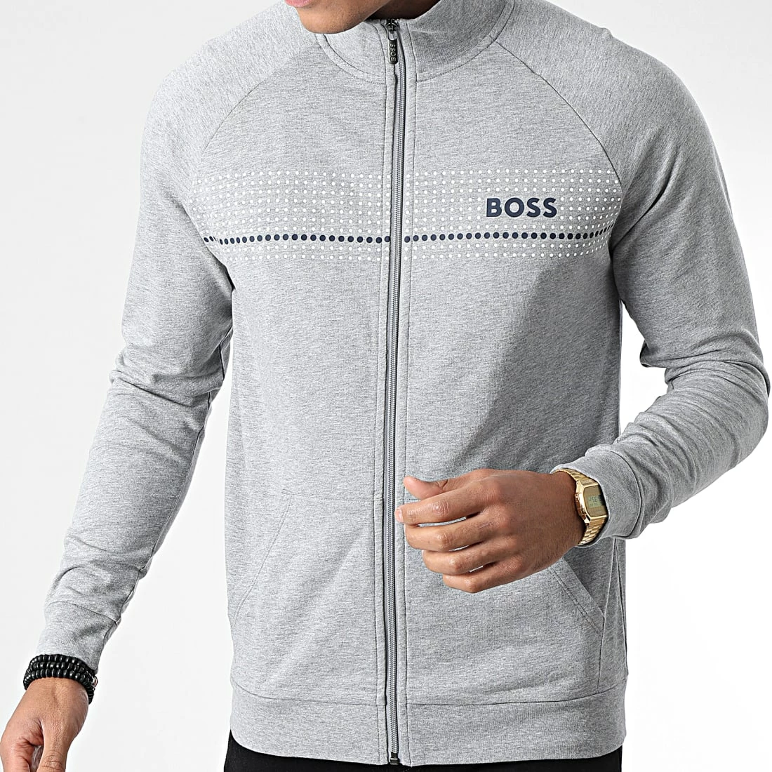 Budget ❤️ Sweat Zippé 50485945 Gris Chiné de BOSS 🥰