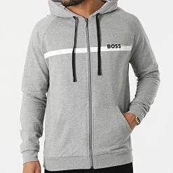 Remise ⌛ Sweat Zippé Capuche 50465773 Gris Chiné de BOSS 🎉
