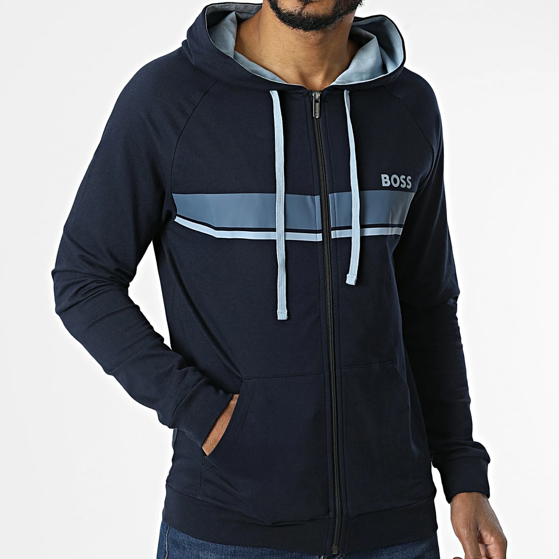 • Sweat zippé capuche tendance imprimé BOSS sur la poitrine