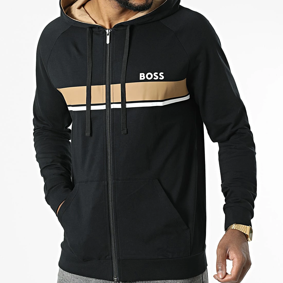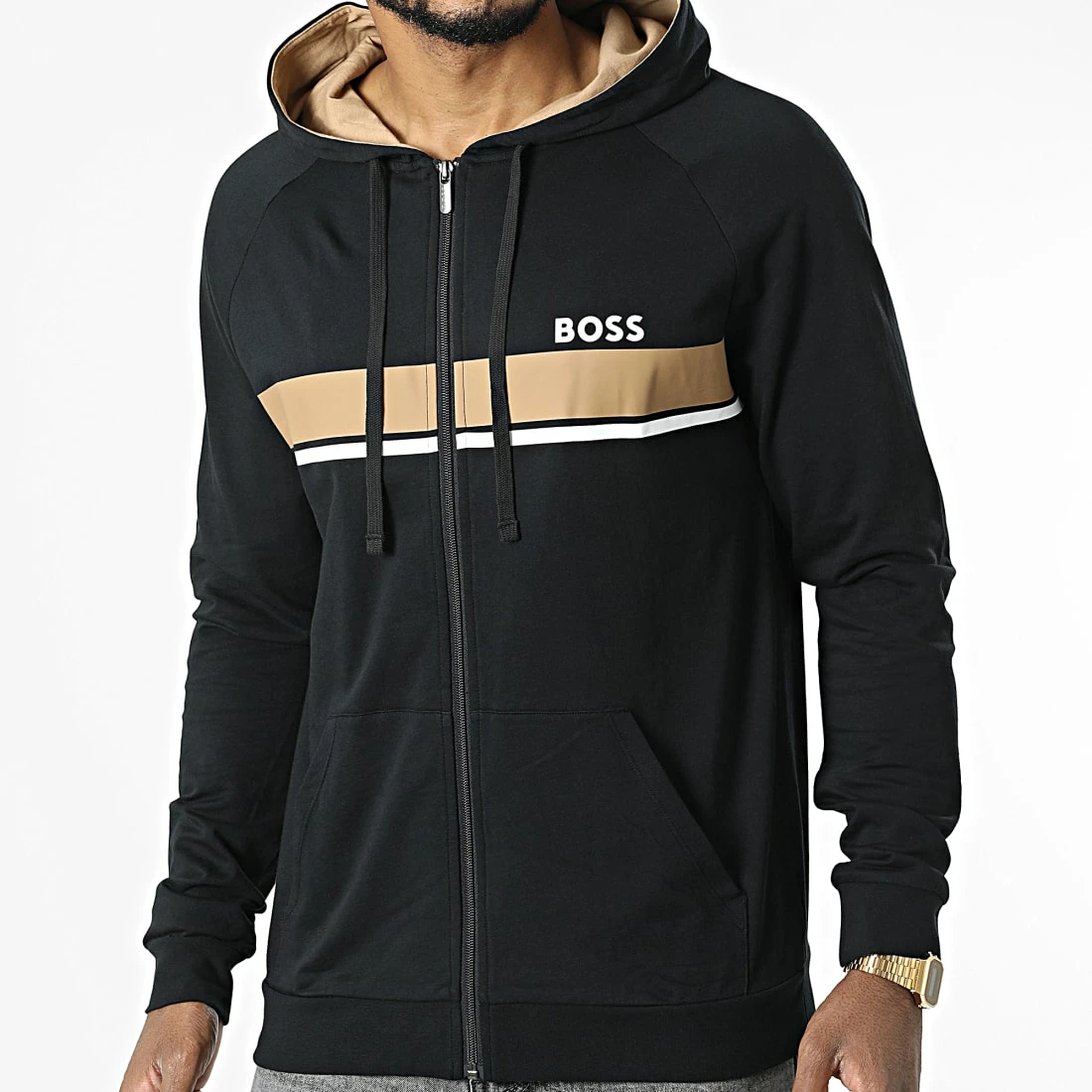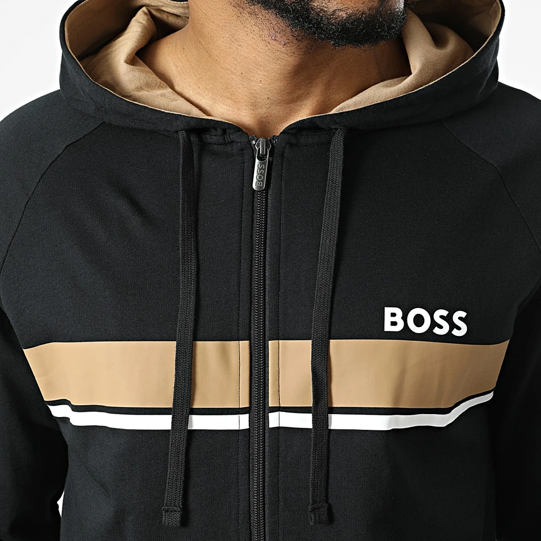 • Sweat zippé capuche tendance imprimé BOSS sur la poitrine