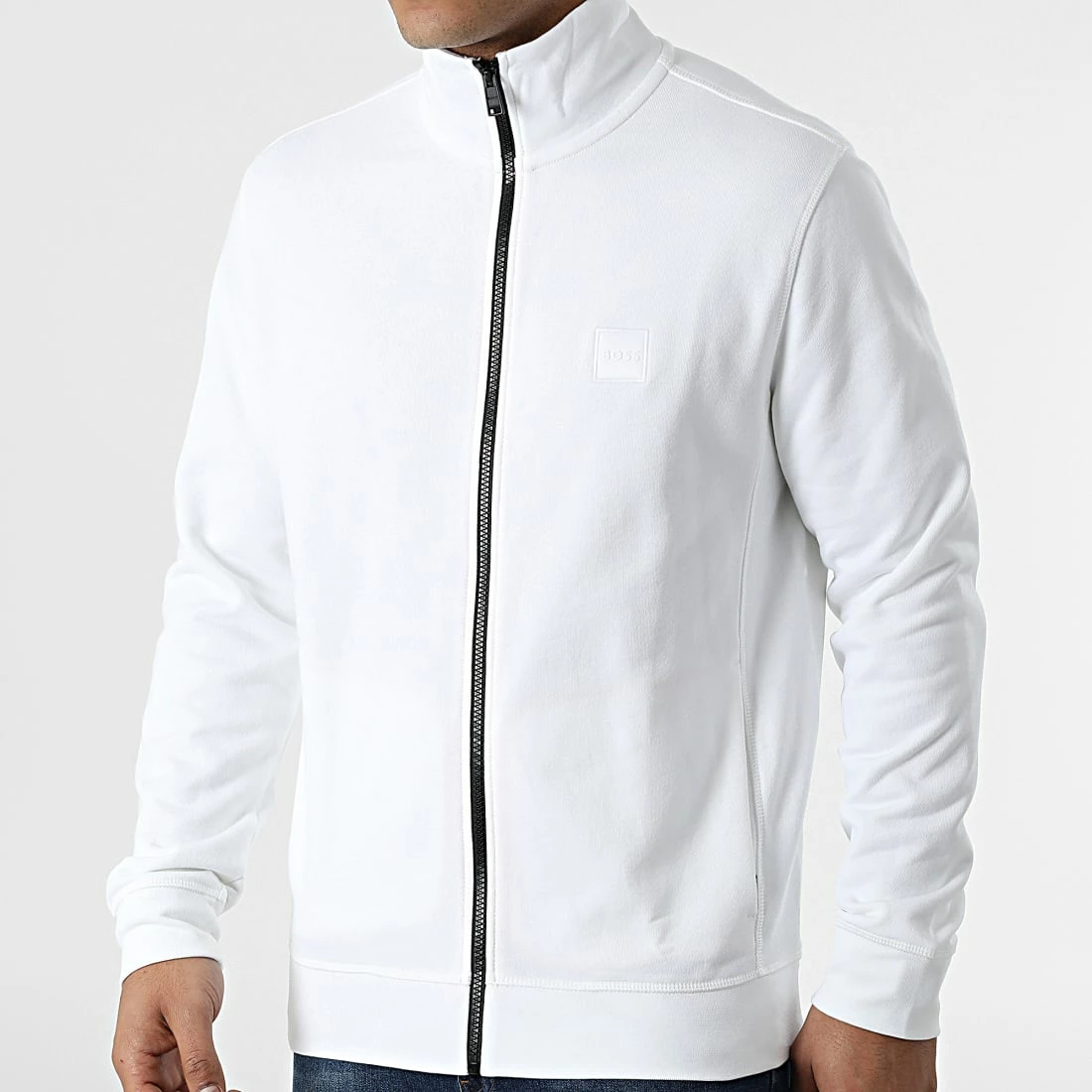 • Sweat zippé capuche tendance avec patch BOSS brodé