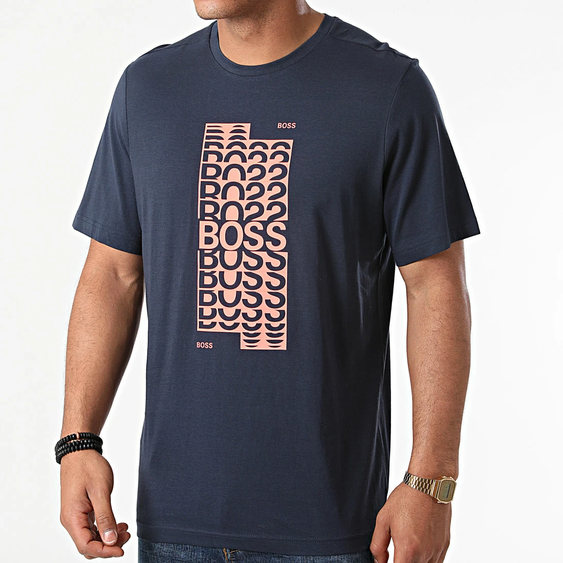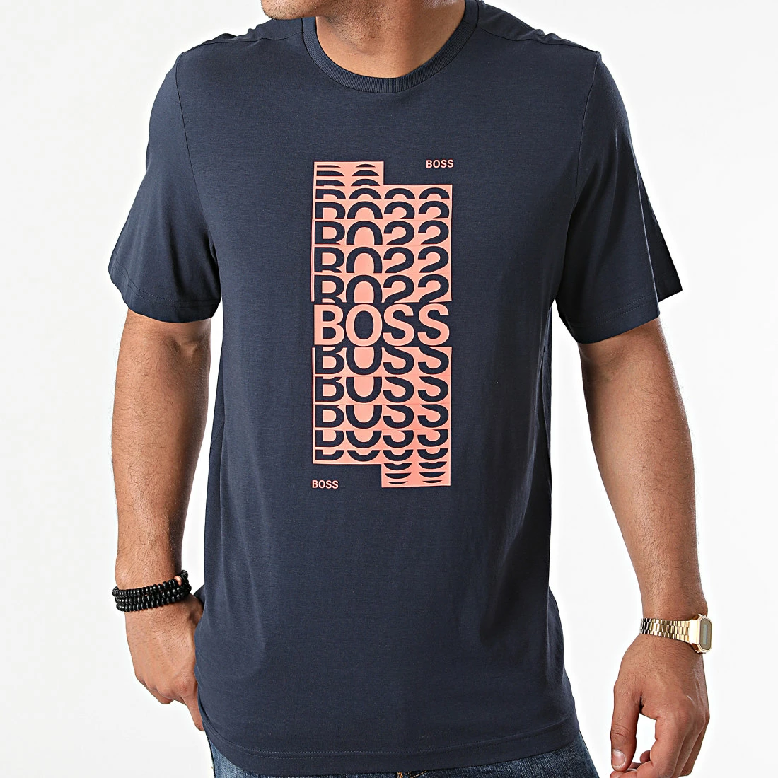 • Tee shirt en coton imprimé visuel BOSS à l’avant