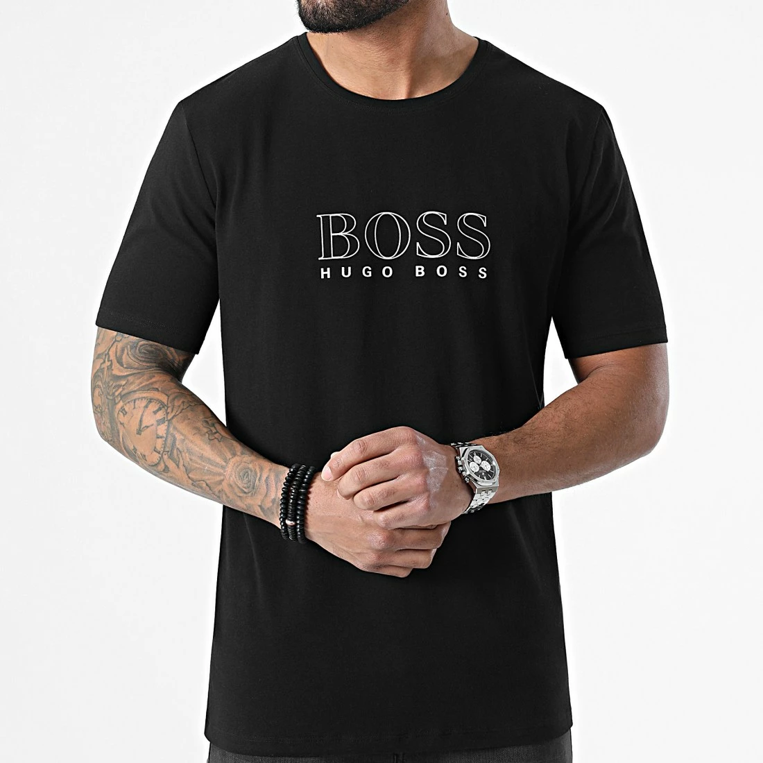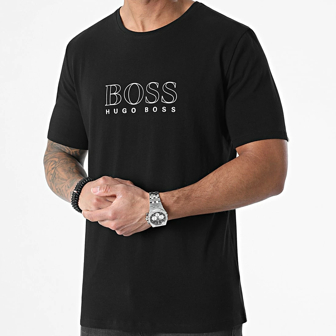 • Tee shirt tendance imprimé visuel BOSS argenté