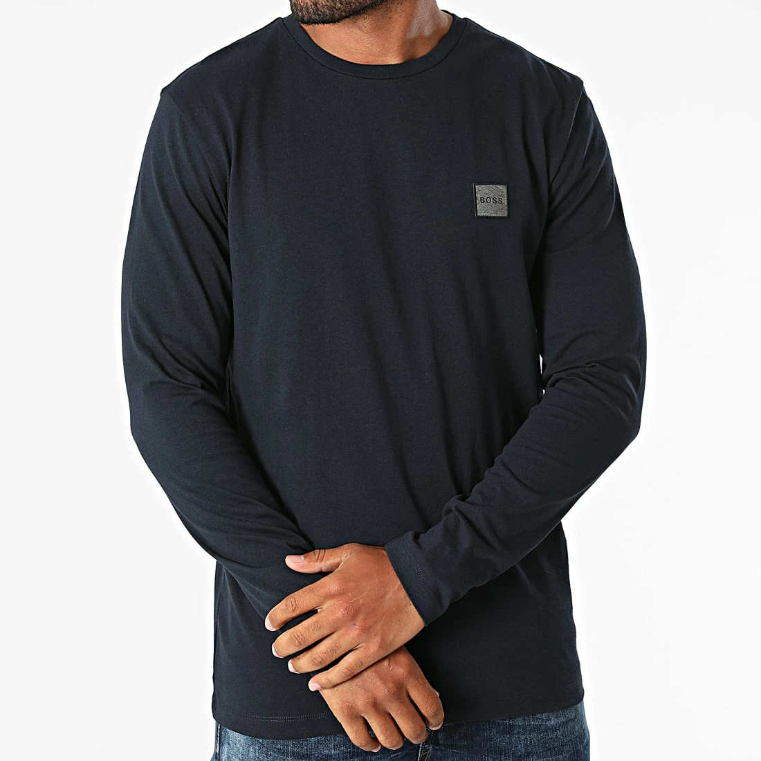 • Tee shirt manches longues en coton brodé BOSS sur la poitrine