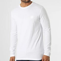 Bon marché 💯 Tee 👚 Shirt Manches Longues Tacks 50476192 Blanc de BOSS ✔️